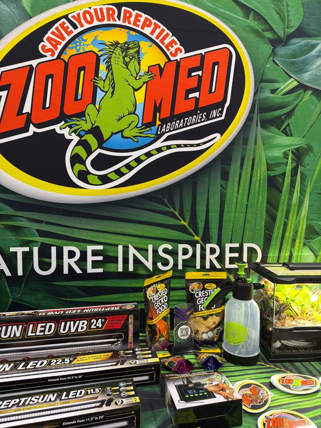 "Find the booth where habitats thrive, Zoo Med's magic helps reptiles survive! Look for bright colors, supplies galore, your next clue awaits—now explore and soar!"